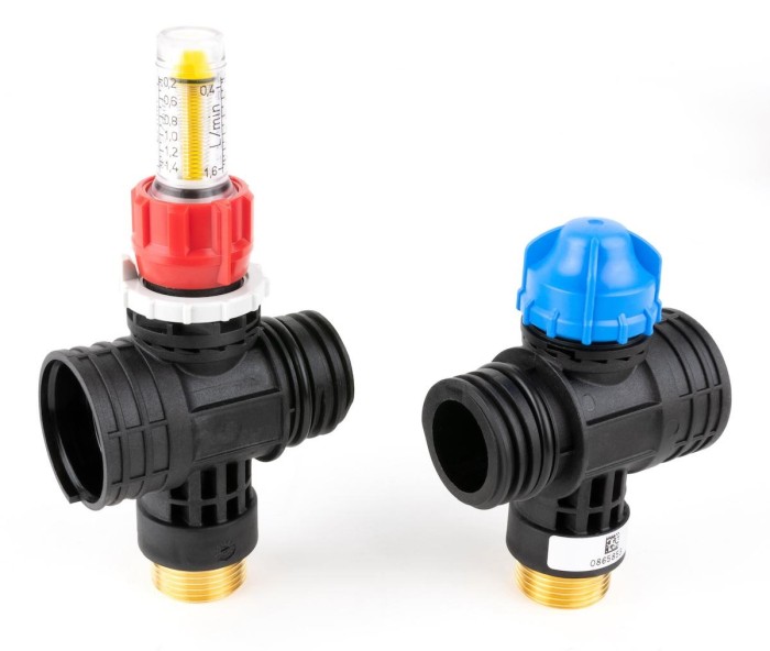 Na zaworze odcinającym na belce powrotnej można zamontować siłownik termoelektryczny (np. TSA-01) i podłączyć go do systemu sterowania strefowego (np. FloorControl, CosiTherm), co pozwoli ustawić różne temperatury w każdej ze stref.
