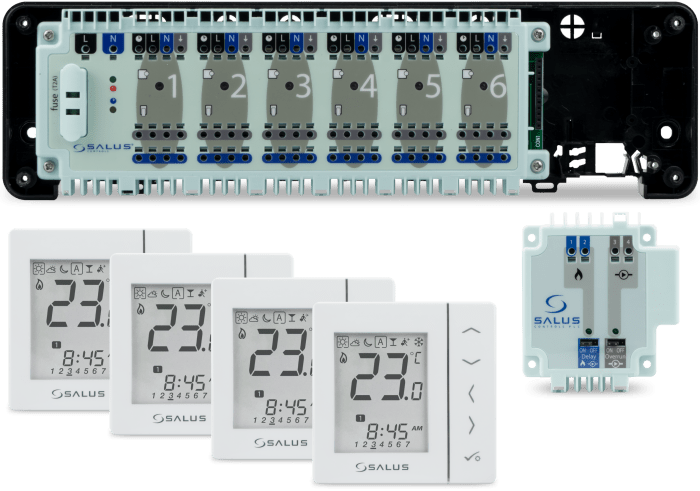 Przesyła sygnały do listwy sterującej systemu FloorControl lub steruje (on/off) zewnętrznym urządzeniem.
