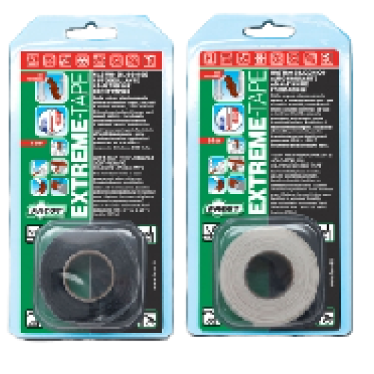 Extreme Tape – silikonowa, wulkanizująca, wysoce uszczelniająca taśma naprawcza do drobnych nieszczelności w instalacjach cieczy i powietrza. Dzięki swoim właściwością może być stosowana nawet pod ciśnieniem jak i na mokre przewody. Odporna na temperatury do 260°C. Nie zawiera kleju, po kilku minutach w wyniku samowulkanizacji taśma tworzy jednolite uszczelnienie odporne na rozerwanie. ROLKA 25,4mmX3m