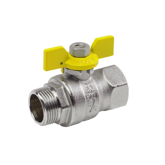 Zawór kulowy chromowany PN5 GZ-GW z gwintem pokrętło motylkowe żółte - Mino 650