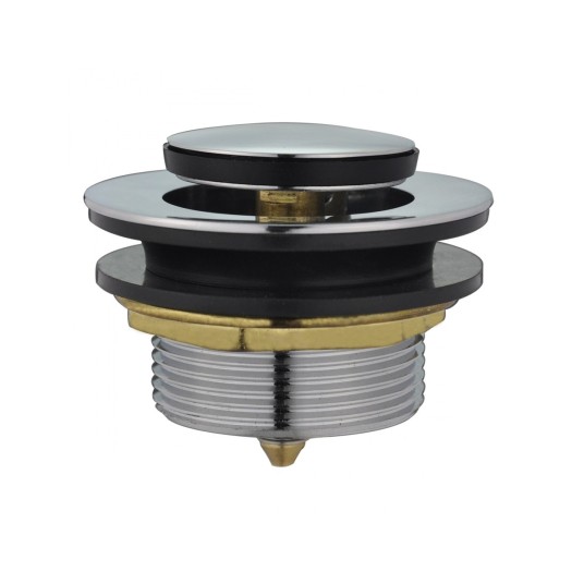 Spust do brodzika wykonany z mosiądzu z okrągłym korkiem STOPA ozdobnym o średnicy 37 mm. Przyłącze 6/4. Spust posiada zatrzaskowy mechanizm zamykający typy „klik-klak”