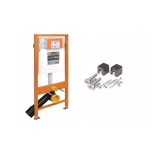 JOMOTech 2W1 samodzielny element WC do muszli naściennej, ze spłuczką podtynkową SLK, spłukiwanie dwudzielne lub funkcja Start/Stop, z obsługą od przodu. Wysokość montażowa 1120 mm. W skład zestawu wchodzą: samodzielny element JOMOTech 174-91100600-00 oraz uchwyt ścienny do montażu 173-30010000-00.