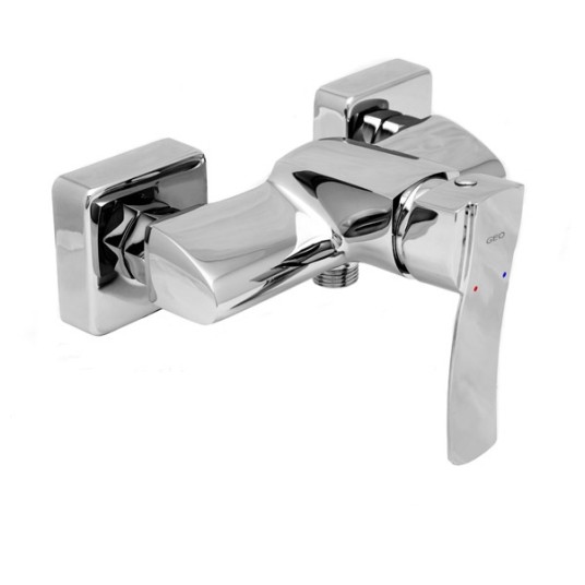 Bateria natryskowa: mechaniczna, jednouchwytowa, dwuotworowa, ścienna, bez wylewki, bez przełącznika, grupa akustyczna II, klasa przepływu S, kolor chrom.