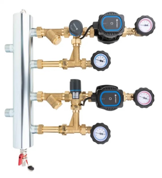 Zestaw mieszający ze sprzęgłem hydraulicznym BPS 961 AP, człon z zaworem obrotowym ARV 362 i termostatycznym ATM 561, pompy AFRISO APH 160