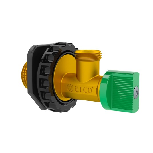 Zawór kątowy spłuczka PN16 GZ-GZ z gwintem pokrętło original ABS zielone - A·80 System antykamienny VITAQ i uruchamianie na 1/4 obrotu. Idealny do spłuczek podtynkowych.