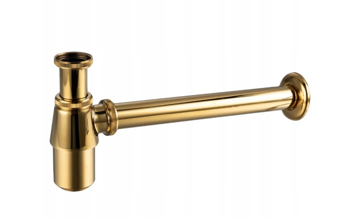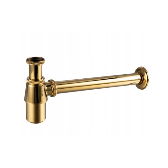 Syfon bez spustu do umywalki wykonany z mosiądzu z nakrętką 1 1” z rurą odpływową średnicy 32mm i długości 300 mm. W komplecie okrągła rozeta o średnicy 70 mm i wysokości 11mm.