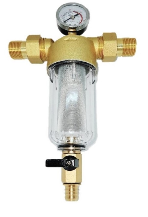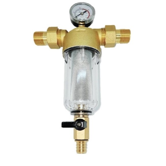 Filtr z siatki ze stali nierdzewnej z płukaniem Manometr, klucz, uchwyt i zestaw przyłączy1" w zestawie