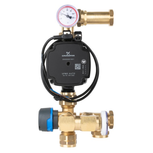 Montowany między źródłem ciepła a rozdzielaczem ogrzewania płaszczyznowego w szafce rozdzielacza.