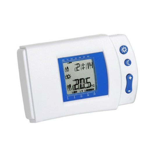 Termostat HP-510 jest termostatem z programowaniem na cały tydzień. Termostat można ustawić w 7-dniowy 24-godzinny program działania. Na każdą godzinę można wybrać temperaturę (CT) lub (ET).