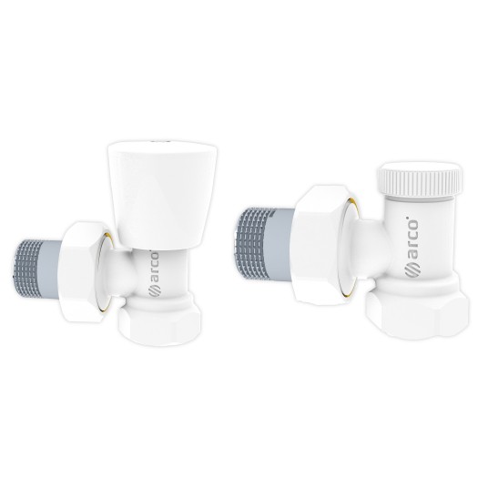 Komplet zaworów grzejnikowych Kolor biały Gwinty 1/2" GW do strony instalacji i 1/2"GZ półśrubunek od strony