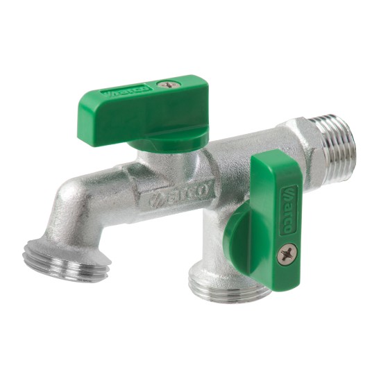 Zawór czerpalny podwójny PN16 z gwintem VITAQ pokrętło zielone - Jardín Nano Doble