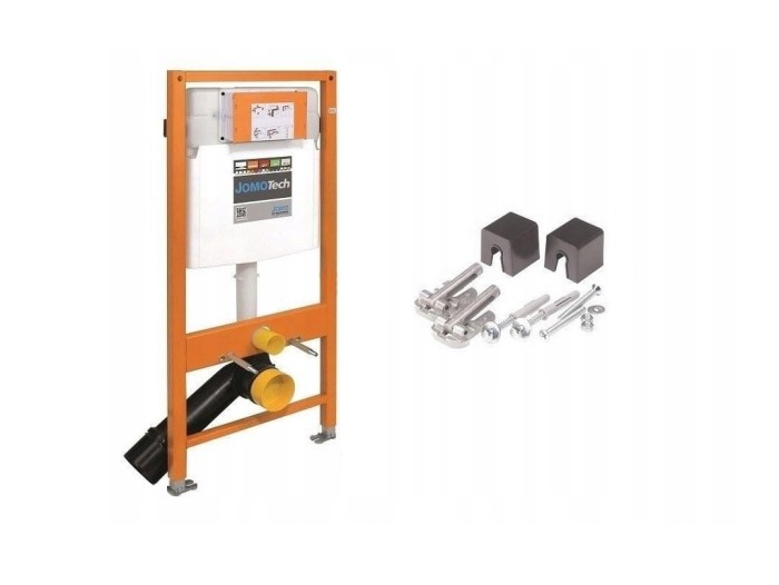JOMOTech 2W1 samodzielny element WC do muszli naściennej, ze spłuczką podtynkową SLK, spłukiwanie dwudzielne lub funkcja Start/Stop, z obsługą od przodu. Wysokość montażowa 1120 mm. W skład zestawu wchodzą: samodzielny element JOMOTech 174-91100600-00 oraz uchwyt ścienny do montażu 173-30010000-00.
