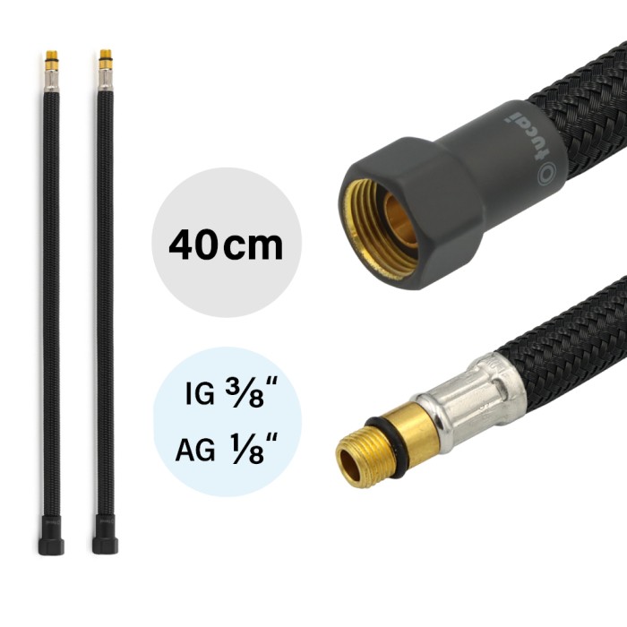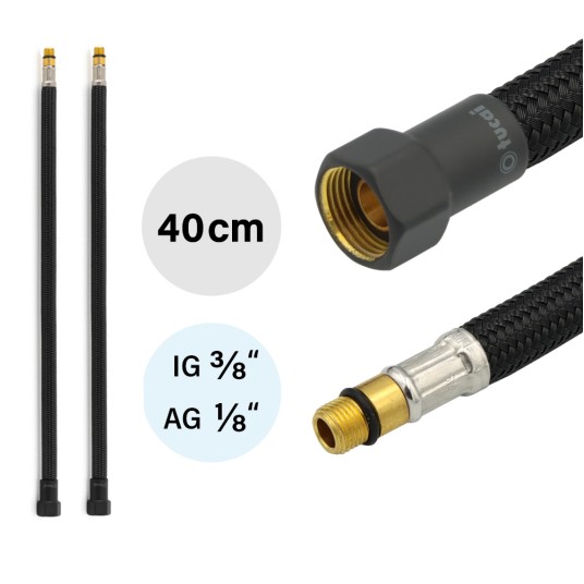 Wąż TAQ PREMIUM GRIF BLACK pod baterie sztorcowe, sztucer L-15,5mm x 3/8, śr. wew. 8mm, przepływ 28l/min. Max 10 bar, 90 stopni. Antybakteryjny. Zastosowany oplot z materiału o wysokiej elastyczności. Sprzedawany w kompletach 2 szt.