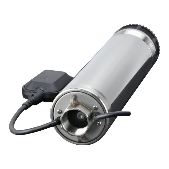 Pompa do studni kręgowych z płaszczem chłodzącym. Popa do pracy w trybie ciągłym o stosunkowo dużej wydajności 110l/min ! Obudowa, wał i rotor wykonane ze stali nierdzewnej.